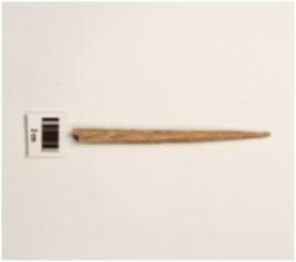 | Description / विवरण | A bone point fragment with broken pointed end and smooth surface. |