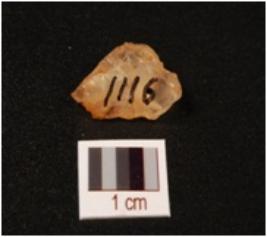 | Description / विवरण | A quartz flake with three flake scars on surface. |