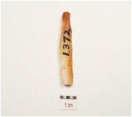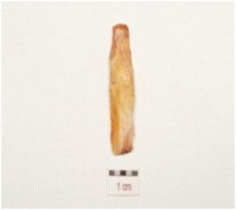 | Description / विवरण | A chert blade with mid ridge on dorsal, triangular in section and use wear marks on cutting edge. |