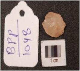 | Description / विवरण | Quartz waste flake with irr-regular shaped, cortex on dorsal sides, rugged surface. |