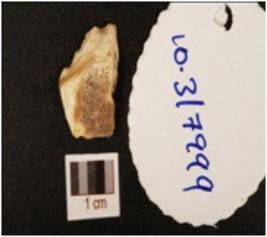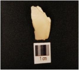 | Description / विवरण | A chert side scraper, side struck, retouches visible on working edge and retangular cross section. |