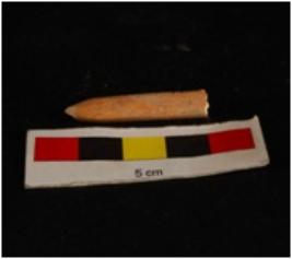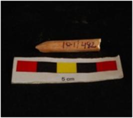 | Description / विवरण | Fragment of a bone point with smooth surface. Circular in section and well polished with slightly pointed one end. |