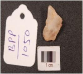 | Description / विवरण | Quartz waste flake with trapezoid shaped, rugged surface. |