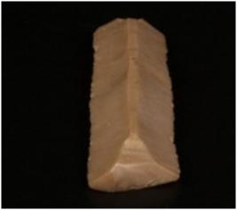 | Description / विवरण | Broken Parallel sided blade made of chert with a mid-ridge, use-wear marks along the cutting edges, broken at distal end and prepared platform. |