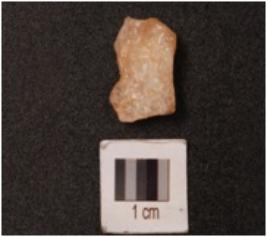 | Description / विवरण | Quartz waste flake with trapezoid shaped cortex on dorsal sides, rugged surface. |
