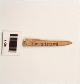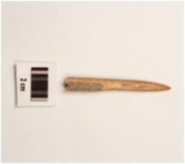 | Description / विवरण | A bone point with smooth surface, rectangular in section and partly broken from one end. |