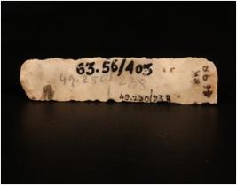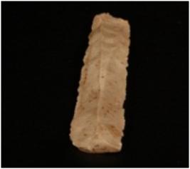 | Description / विवरण | Parallel sided blade made of chert detached from a prepared core, mid-ridge on dorsal side, diffursed bulb on the ventral use-wear marks along the cutting edges and prepared platform. |