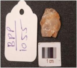 | Description / विवरण | Quartz waste flake, irr-regular shaped, rugged surface. |