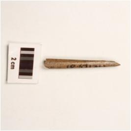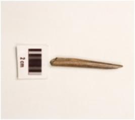 | Description / विवरण | A bone point fragment with smooth polished surface and partly broken from pointed end. |