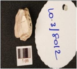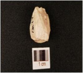 | Description / विवरण | Chert core with blade scars on surface, slight chippings on surface and square cross section. |