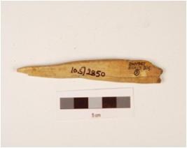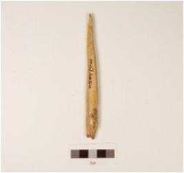 | Description / विवरण | A point made on bone with rectangular in cross section, polished surface and partly broken tip. |