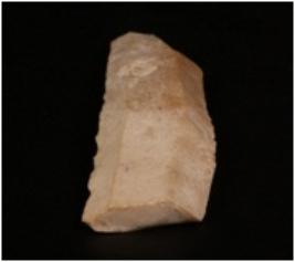 | Description / विवरण | Fragment of a parallel sided blade made of chert, two ridges on dorsal side, use-wear marks along both the cutting edges, triangular in section broken along the distal end and prepared platform. |