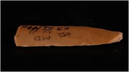 | Description / विवरण | A chert blade with double ridge on cutting edges has use-wear marks and distal end of blade is broken. |