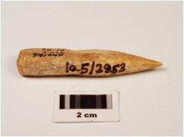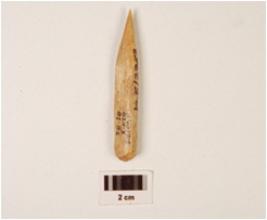 | Description / विवरण | A point made on bone with triangular in cross section, polished surface and intact tip. |