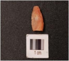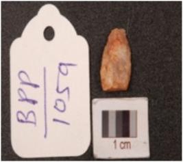 | Description / विवरण | Quartz waste flake, triangular shaped, cortex on dorsal sides, rugged surface. |