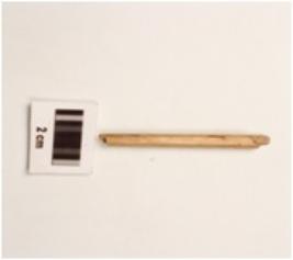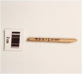 | Description / विवरण | A fragment of bone point, smooth surface, cracks on surface and round in section. |
