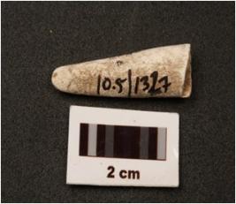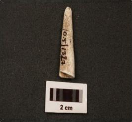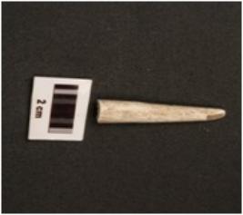 | Description / विवरण | A fragment of bone point slightly broken from pointed end and smooth surface. |