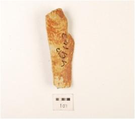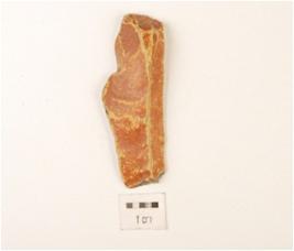 | Description / विवरण | A flake made on chert, flake scars on dorsal side surface, along cutting edge, broken on proximal end, bulb, triangular section, use wear marks. |