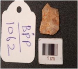 | Description / विवरण | Small quartz waste flake, irregular shaped, rugged surface. |