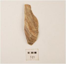 | Description / विवरण | A flake made on chert, flake scars on dorsal side surface, shark cutting edge, proximal end on bulb, plano-convex section. |