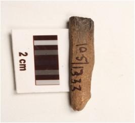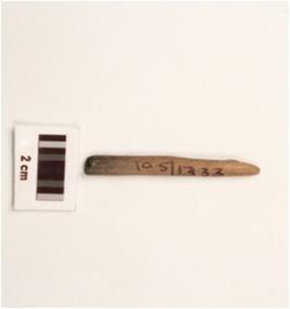 | Description / विवरण | A fragment of bone point with smooth surface, charred from one end and partly broken from both ends. |