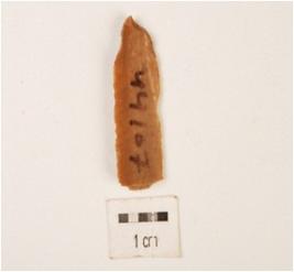| Description / विवरण | A flake made on chert, flake scars on dorsal side surface, one ridge on dorsal side surface, plano-convex section broken on proximal end and bulb difussed. |
