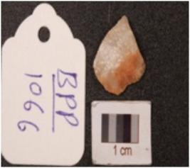 | Description / विवरण | Quartz waste flake, trapezoid shaped, rugged surface, cortex on dorsal sides. |