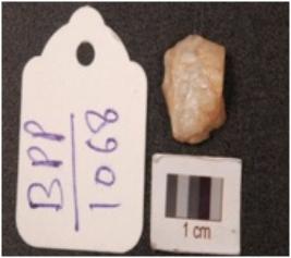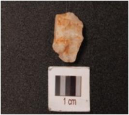 | Description / विवरण | Quartz waste flake, irregular shaped rugged surface. |