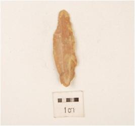| Description / विवरण | Fragment of blade chert object, ridges on dorsal side surface, use wear marks, bulb and platform difussed, triangular section. |