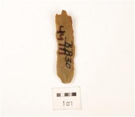 | Description / विवरण | A blade made on chert, two ridge on dorsal side surface, triangular section, use wear marks. |