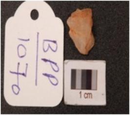 | Description / विवरण | Quartz waste flake, triangular shaped, rugged surface. |