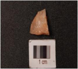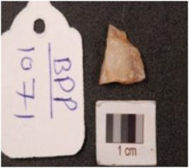 | Description / विवरण | Small quartz waste flake, triangular shaped, rugged surface. |