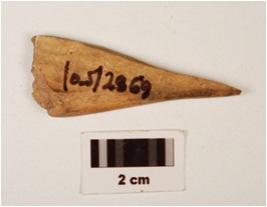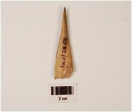 | Description / विवरण | A borer made on bone with rectangular in cross section, polished surface and intact tip. |