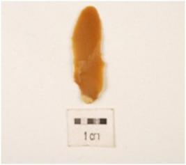 | Description / विवरण | Fragment of blade chert object, use wear marks, plano convex section, proximal bulb and platform difussed. |