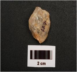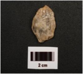 | Description / विवरण | Quartz scraper with flake scars on both sides and use wear marks on working edge. |