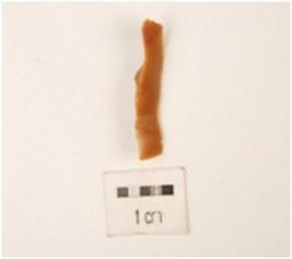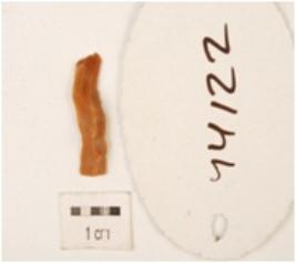 | Description / विवरण | Fragment of blade chert object, use wear marks, triangular section, ridge and flake scars on dorsal side surface, platform and bulb defussed. |