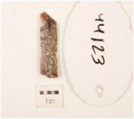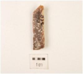 | Description / विवरण | Fragment of blade chert object, triangular section, use-wear marks, two ridge on dorsal side surface, bulb and platform defussed. |