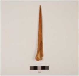 | Description / विवरण | A point made on bone with rectangular in cross section, polished surface and slightly broken tip. |