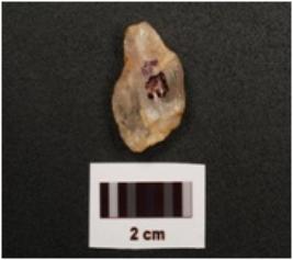 | Description / विवरण | A quartz flake with flake scars on both sides and use wear marks on edges. |