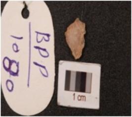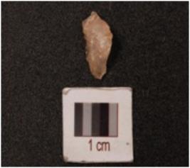 | Description / विवरण | Quartz small waste flake, slightly pointed at one end, rugged surface. |