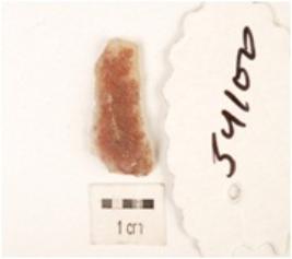 | Description / विवरण | Fragment of blade chert object, flake scars and ridges on dorsal side surface, plano-convex in section, platform and bulb absent, use wear marks along cutting edge. |