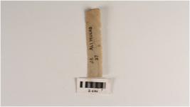 | Description / विवरण | Chert blade with a mid-ridge on dorsal side, use-wear marks along the cutting edges, triangular in section. |