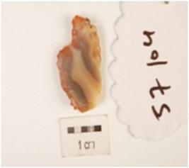 | Description / विवरण | A scraper made on chert, flake scars on dorsal side surface, retouched and use wear marks along cutting edge, prepared platform on dorsal side surafce and proximal bulb absent on ventral side, plano-convex in section. |