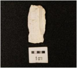 | Description / विवरण | Fragment of blade chert object, end struck flake, plano-convex in section, platform and bulb absent, use wear marks along cutting edge, cortex on one side surface. |