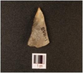 | Description / विवरण | A quartz scraper with flake scars on surface and use-wear marks on working edge. |
