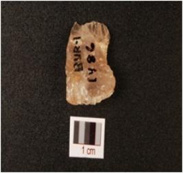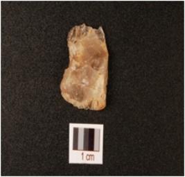 | Description / विवरण | A quartz scraper with flake scars on dorsal, use wear marks on working edge and prepared platform. |