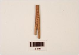 | Description / विवरण | A fragment of bone needle, broken eye, round surface, and section, slightly flat from bottom, polished, brown in colour, mended from one side. |