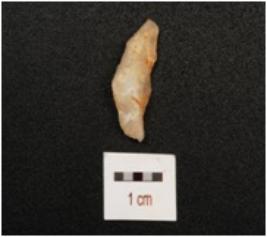 | Description / विवरण | Cresent, made on quartz, smooth surface with use wear marks on working edge and partly cortex visible. |