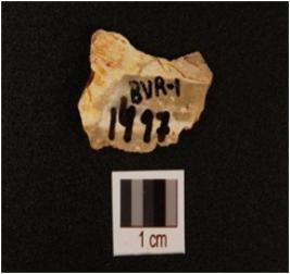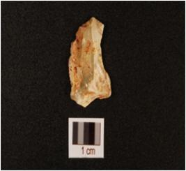 | Description / विवरण | A chert scraper with flake scars on dorsal, bulb on ventral and use wear marks on working edge. |