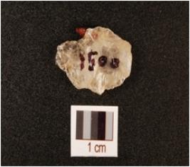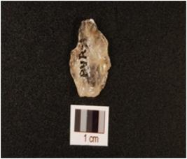 | Description / विवरण | A quartz scraper with flake scars on dorsal, use wear marks on working edge and smooth surface. |